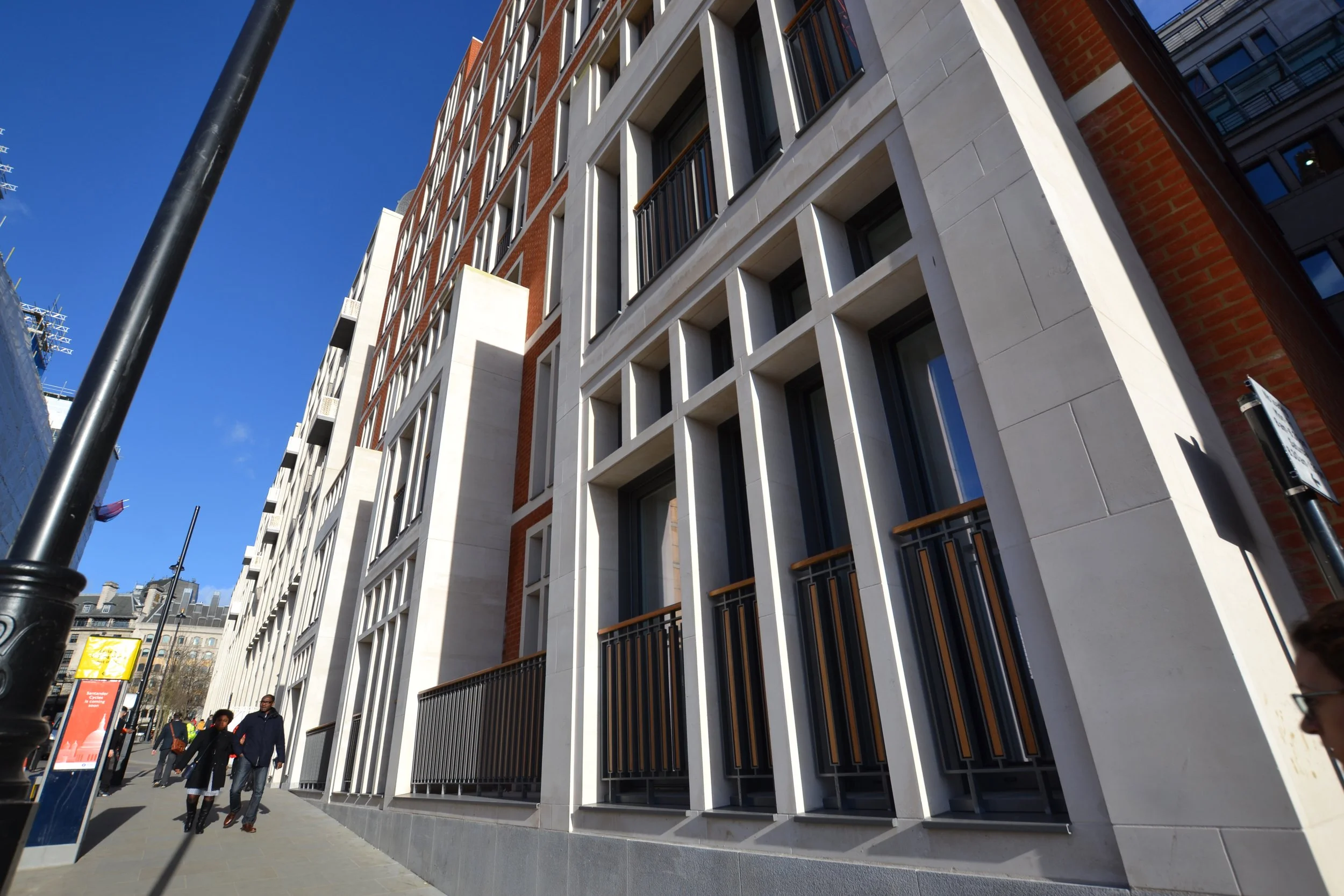 Throughout the project we designed supplied and installed 10,000m2 Stone cladding, bespoke vanities, bath tops, columns, borders and inlays. We waterproofed all bathrooms and showers throughout. The external works consisted of a granite plinth and 3 levels of Portland consisting of various elements such as transoms, mullions and balcony including SFS to all works.